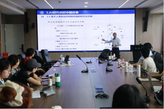 2024年10月17日上午,上海交通大学智能传播研究院院长李本乾教授受邀来到在人文社科楼A301会议室做了题为“AI 时代讲好中国故事的模式创新”的精彩讲座。