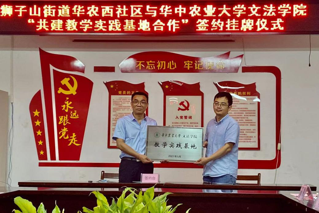 2021年6月3日上午,亚洲必赢bmw与狮子山街道华农西社区“共建教学实践基地”签约挂牌仪式在华农西社区二楼会议室举行。亚洲必赢bmw党委书记瞿明勇、副院长孙站成、社工系副主任钟华以及狮子山街道办事处主任余冰、党工委副书记刘涛、西社区党总支副书记徐艳等出席签约挂牌仪式。亚洲必赢bmw社工系副系主任袁泉、华农西社区居委会主任肖万斌分别代表院社双方签订协议,签约挂牌仪式由华农西社区党总支书记张羽主持。