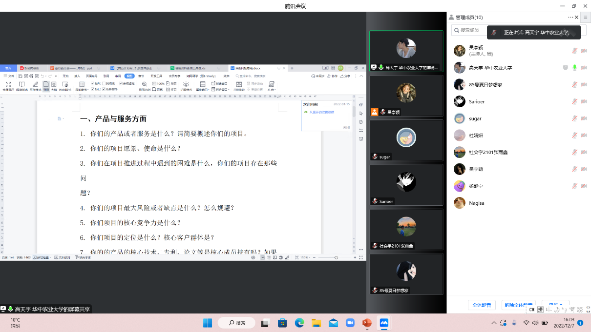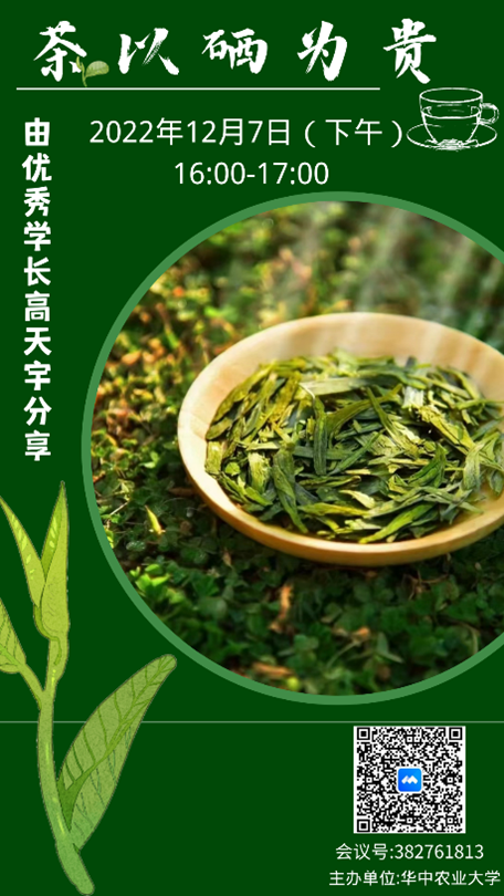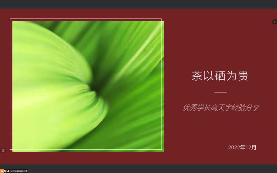 此次经验分享会由研究生高天宇主讲,高天宇主持的“茶以硒为贵——恩施鹤峰富硒有机茶立体茶业”项目曾获我们2022年度“互联网+”创新创业大赛二等奖。