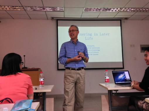 受我们及农村社会建设与管理研究中心盛情邀请,加拿大维多利亚大学社会学系吴正教授莅临我校讲学,于2015年10月16日下午16:00,在人文楼M612为师生带来一场题为“加拿大中老年人重选婚姻与同居伴侣的研究”的学术讲座,校内外十余名教师和近50名研究生到会聆听。