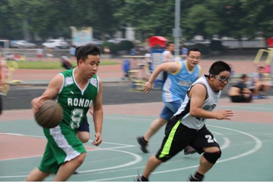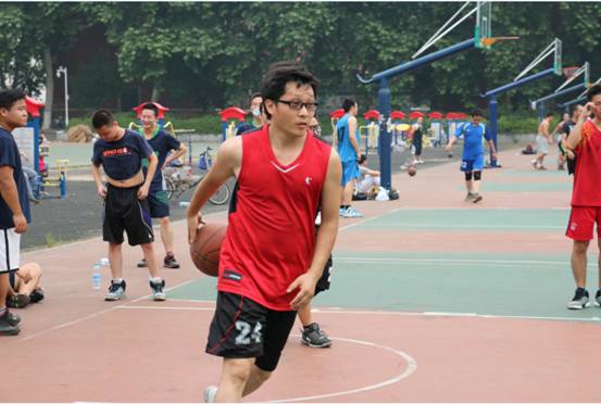 比赛进入白热化的第四节,红队在霍军亮老师的带领下进行大力反攻,姜昕同学中场发力、多次命中中投,蓝队则由李长健老师和程宇光老师带领顽强抵抗,李梦源多次快攻得手。激烈比赛中,队员健步如飞,拉拉队也呐喊助威,整个场地群情激昂,热烈无比。当然,激烈比赛中也难免有一些小插曲,某参赛同学情急之下,以迅雷不及掩耳盗铃之势,迅速将球传给了执裁的裁判,顿时场上参赛球员和拉拉队的小伙伴都惊呆了。
