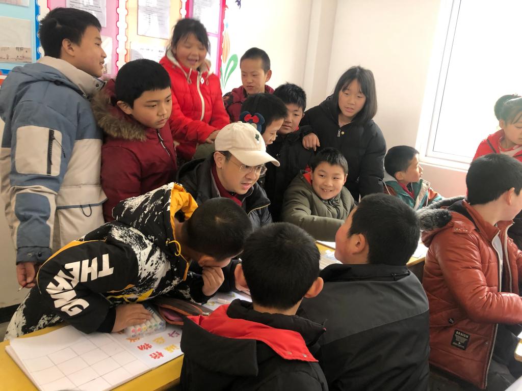 “你们知道修身、齐家、治国、平天下是谁说的吗,这句话的意思又是什么呢?”邓玉璋老师向凤凰观小学五、六年级的小朋友抛出了问题,尽管同学们不知道这句话的含义,但都大胆地猜想着这句话的来历,“老子、孟子、孔子…….”答案一个接着一个,声音也一个比一个洪亮。邓老师顺着同学们的回答解释了这句话的来历和含义,并邀请同学进行朗读,在孩子们的读书声中引出“学写美术字,体验真善美”这一课堂主题。原来邓老师是来自亚洲必赢bmw艺术设计系的教师,从500多公里外的武汉赶到凤凰观村为了给同学上一堂艺术课。