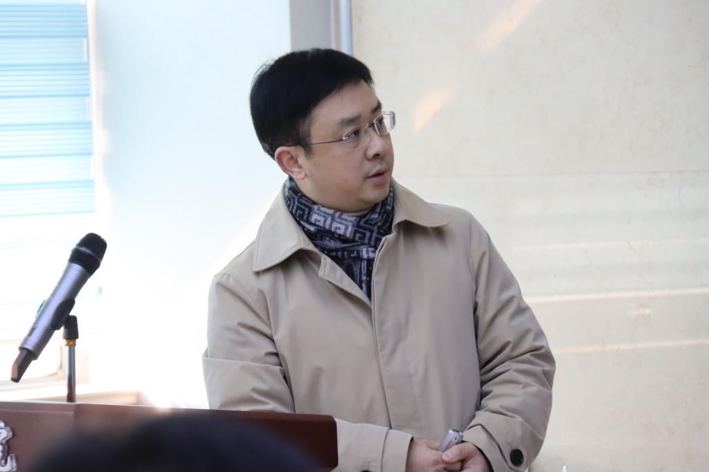 行政教工党支部书记孙站成汇报支部将党建工作与业务工作紧密结合,将理论学习与时事政治紧密结合,将延续传统与实践创新紧密结合的工作思路和具体内容,对未来进一步加强支部班子建设,进一步落实支部制度进行了明确规划。