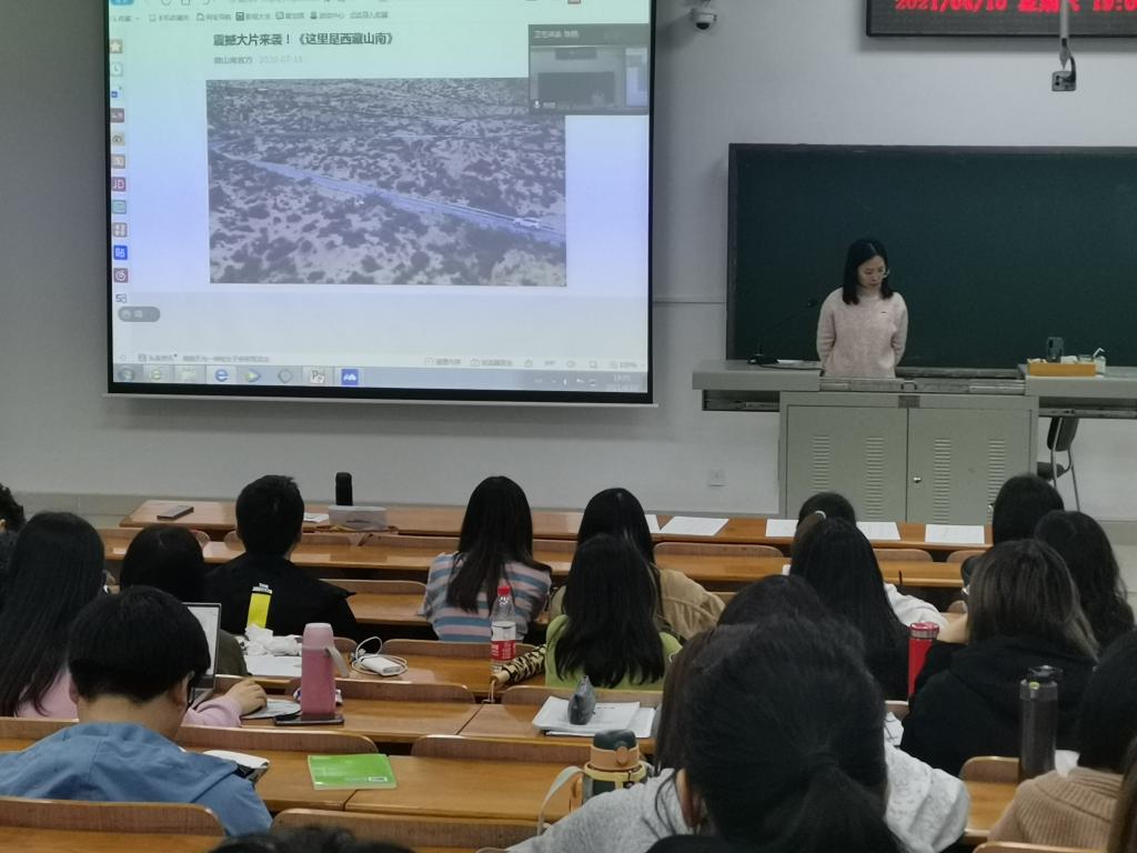 随后,在西藏山南工作的何丹也通过线上的形式,分享了自己对基层工作的理解。她着重向同学们介绍了扶贫工作和意识形态工作,这些工作真实展现了基层工作面貌,包括走访贫困户,为贫困户做思想工作,结合民族地区情况的党建工作等。