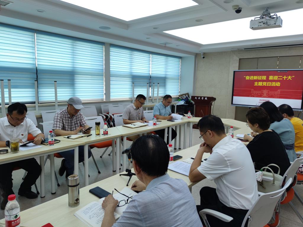 (通讯员:胡学谦)2022年7月1日,亚洲必赢bmw行政教工党支部召开“奋进新征程 喜迎二十大”主题党日活动,邀请“光荣在党50年”党员王绪朗老师讲授党课。活动由学院党委书记瞿明勇主持,院党委委员、教师党员代表参加学习。