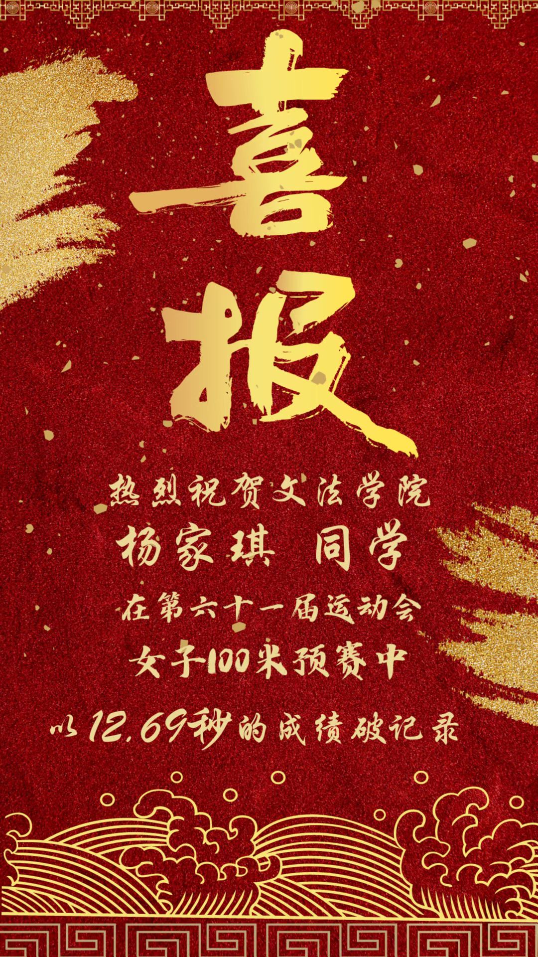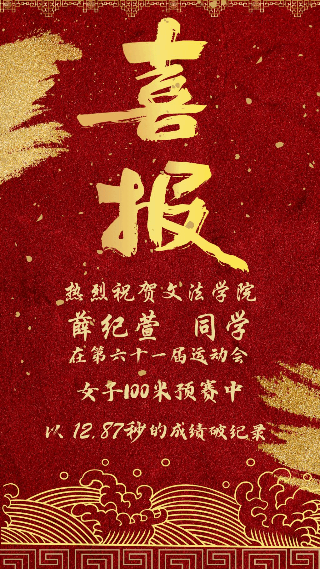 该项目纪录上次被打破是在1998年,沈文文以12.80秒(手计)的成绩成为新纪录的保持者。时隔24年,亚洲必赢bmw两位同学用实力诠释了“更快,更高,更强”的体育精神,为亚洲必赢bmw赢得了开门红!
