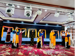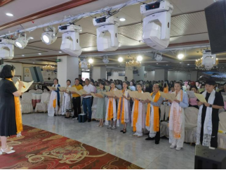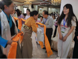 主持人陈老师致谢幕词,宣布结业仪式圆满成功。学员们纷纷与老师合照,并为老师们献上哈达,向培训团队致以崇高的敬意和美好的祝福。