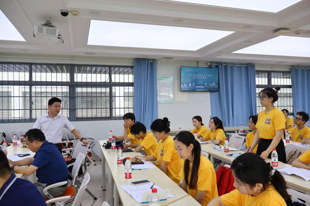 下午5时,暑期夏令营活动闭营仪式于人文楼M612举行。李祖佩副院长宣读优秀营员名单,共22位营员荣获优秀营员。田北海院长为获奖营员颁发证书并合影留念,随后对本次暑期夏令营活动进行总结发言,他对每位参会人员表示感谢,对获奖营员表示祝贺,对未来再次与营员们相聚狮子山南湖畔表示期待,并祝福每位同学在将来的日子里鹏程万里,更上一层楼。