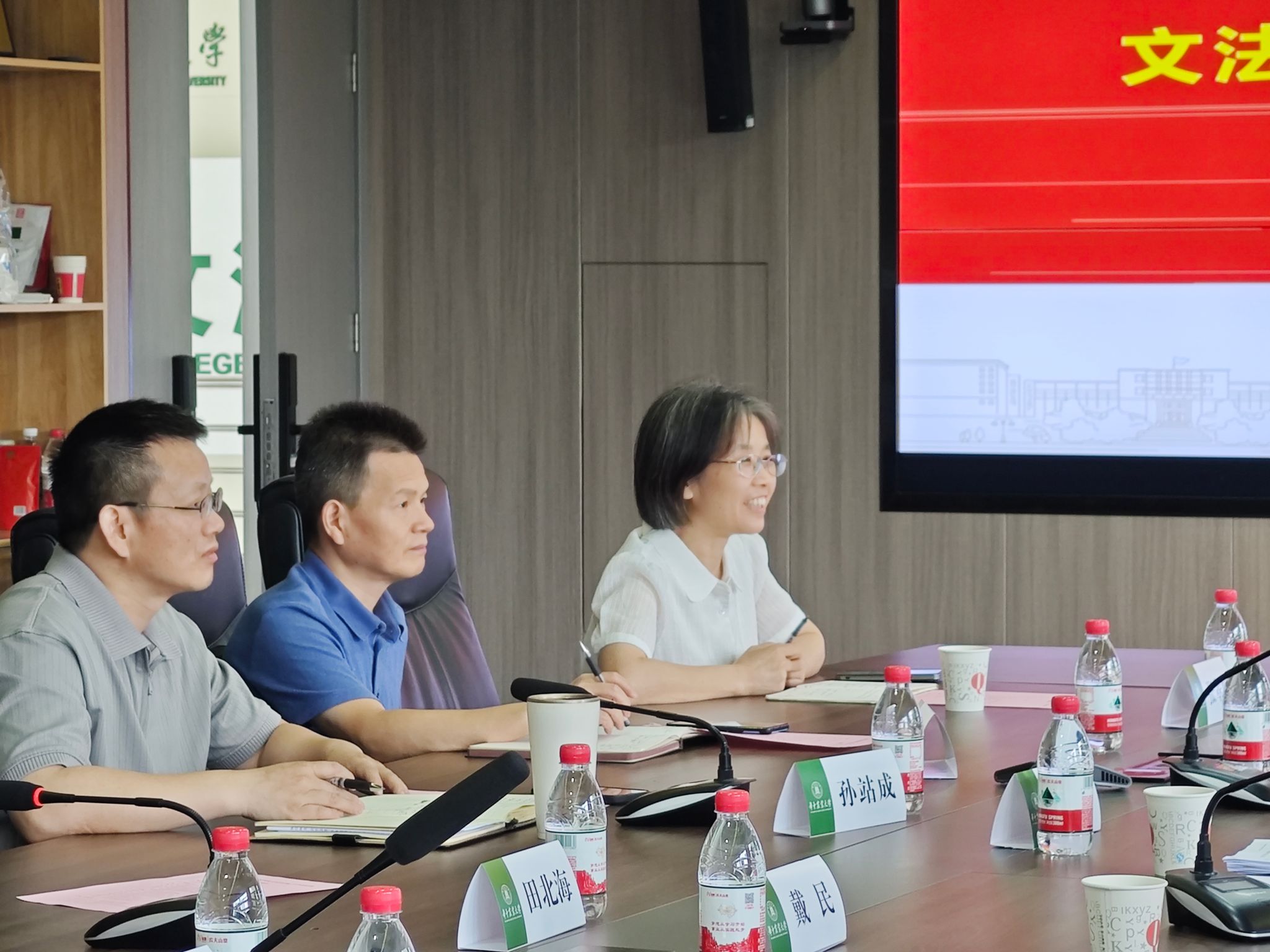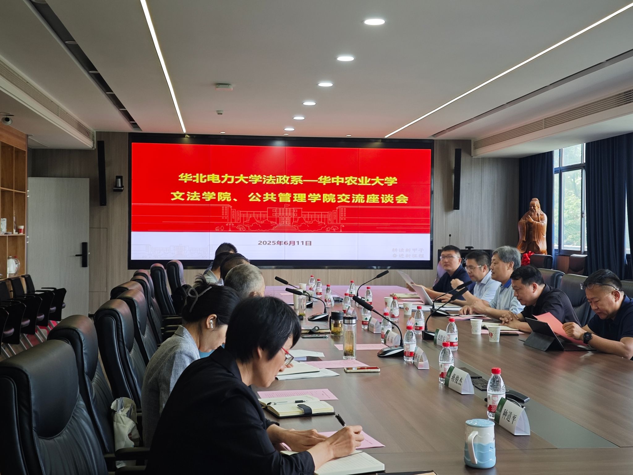 座谈会上,戴民介绍此行目的,指出华北电力大学处于两地办学关键阶段,期望借鉴我校在学科建设与人才培养方面的经验。田北海全面介绍了学院发展现状,指出学院人才培养始终坚持“三全育人,五育融通,师生融乐,全面发展”育人理念,此次本科人才培养方案编制强化通专融合,数智融创,系统设计人文类公共基础课程,科学设置大类平台课程,整合强化大学分专业课程,系统设计实践教育教学环节。学科建设遵循“入主流,创特色”原则, 聚焦“三农”相关领域。