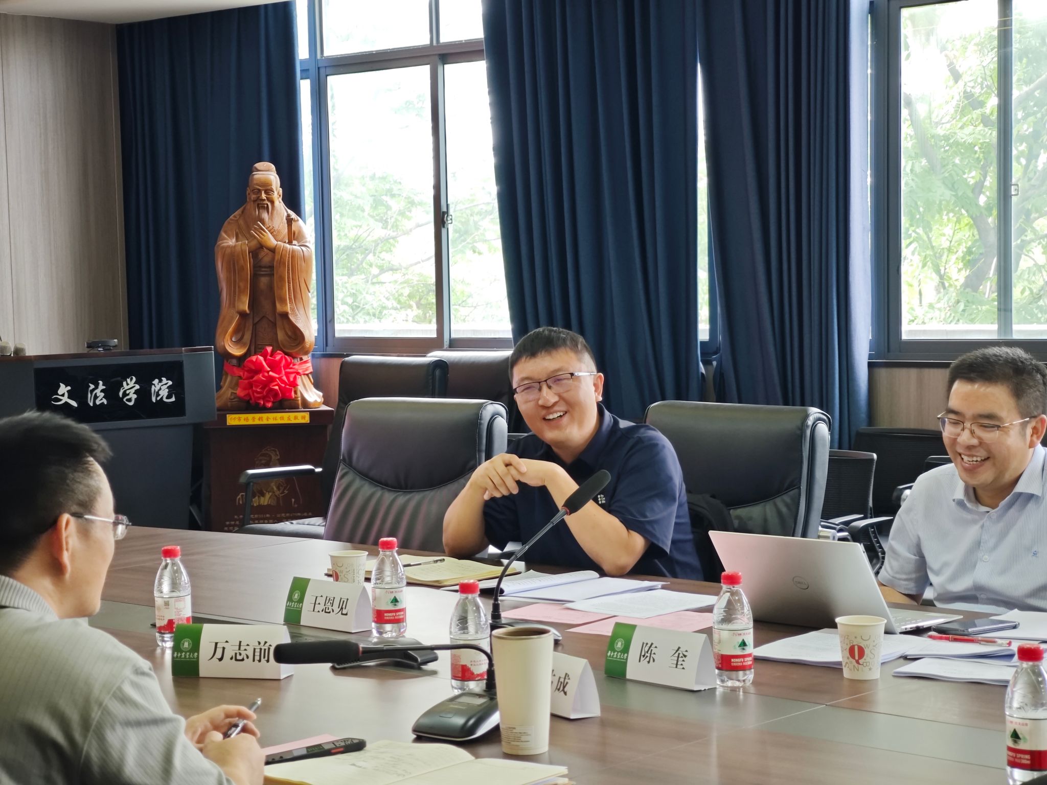 随后双方围绕法学、社会工作与公共管理等专业展开深入交流。万志前分享“主流+特色”发展模式,如开设农业法课程、在知识产权法中融入农业元素等经验。张翠娥重点介绍社会工作专业“3+3”本硕贯通培养模式,蒋俊杰介绍“校、地”融合开展实践教学情况。杨兵围绕MPA非全日制学生培养难点、实践导师机制等交换意见。双方还就本科生实习与就业矛盾、核心课程与特色课程体系建设以及新兴课程师资短缺等问题展开探讨。