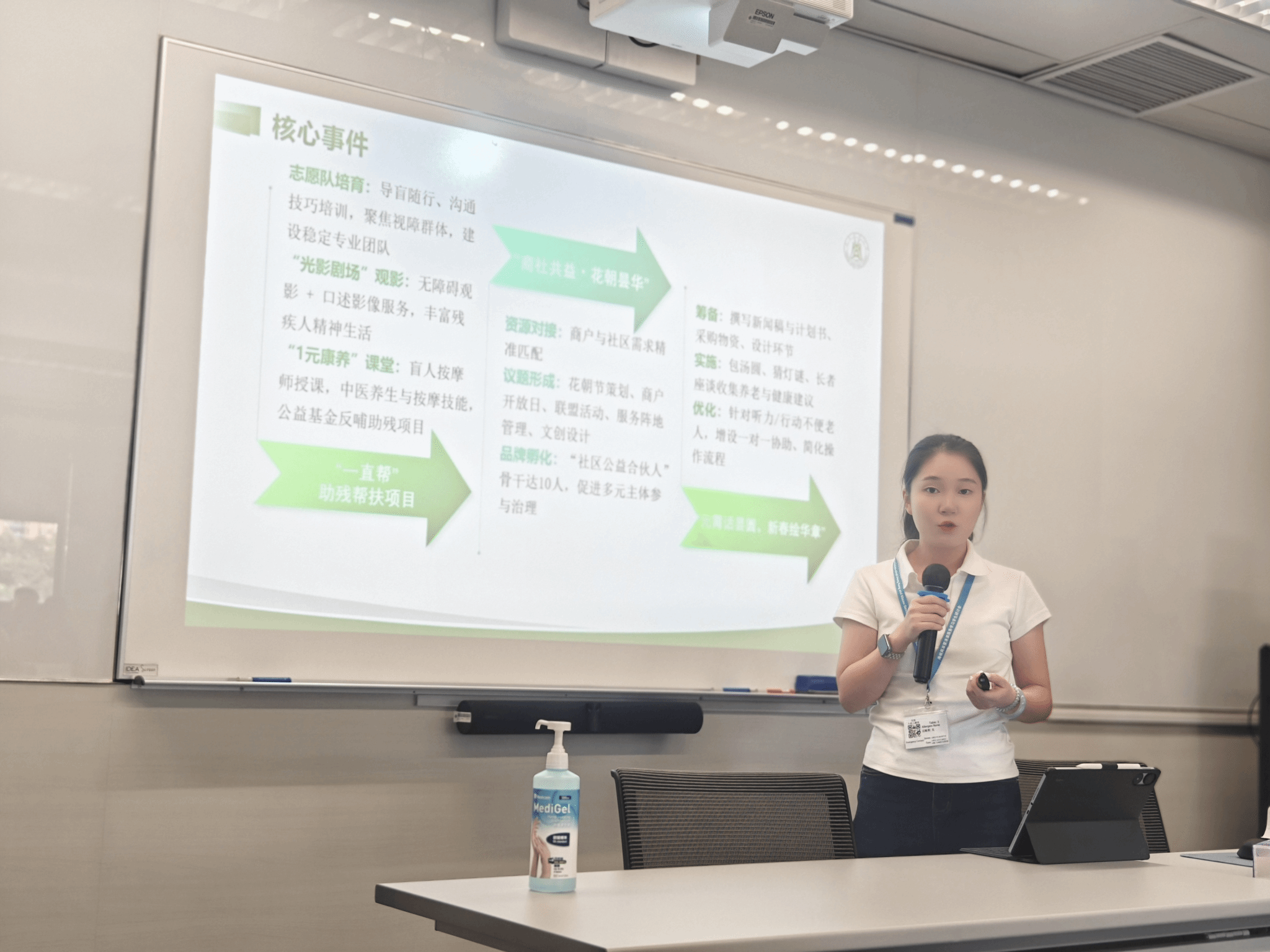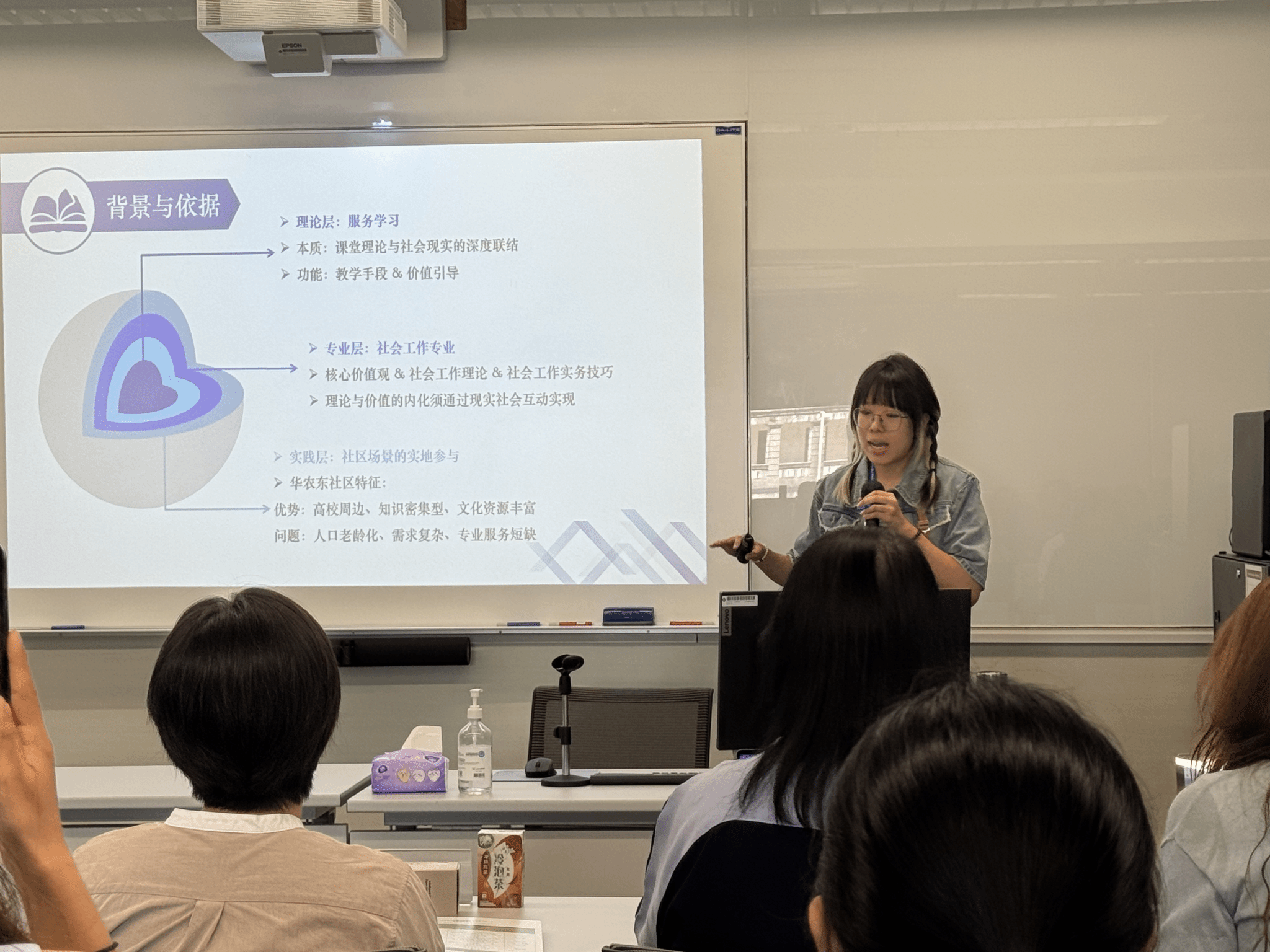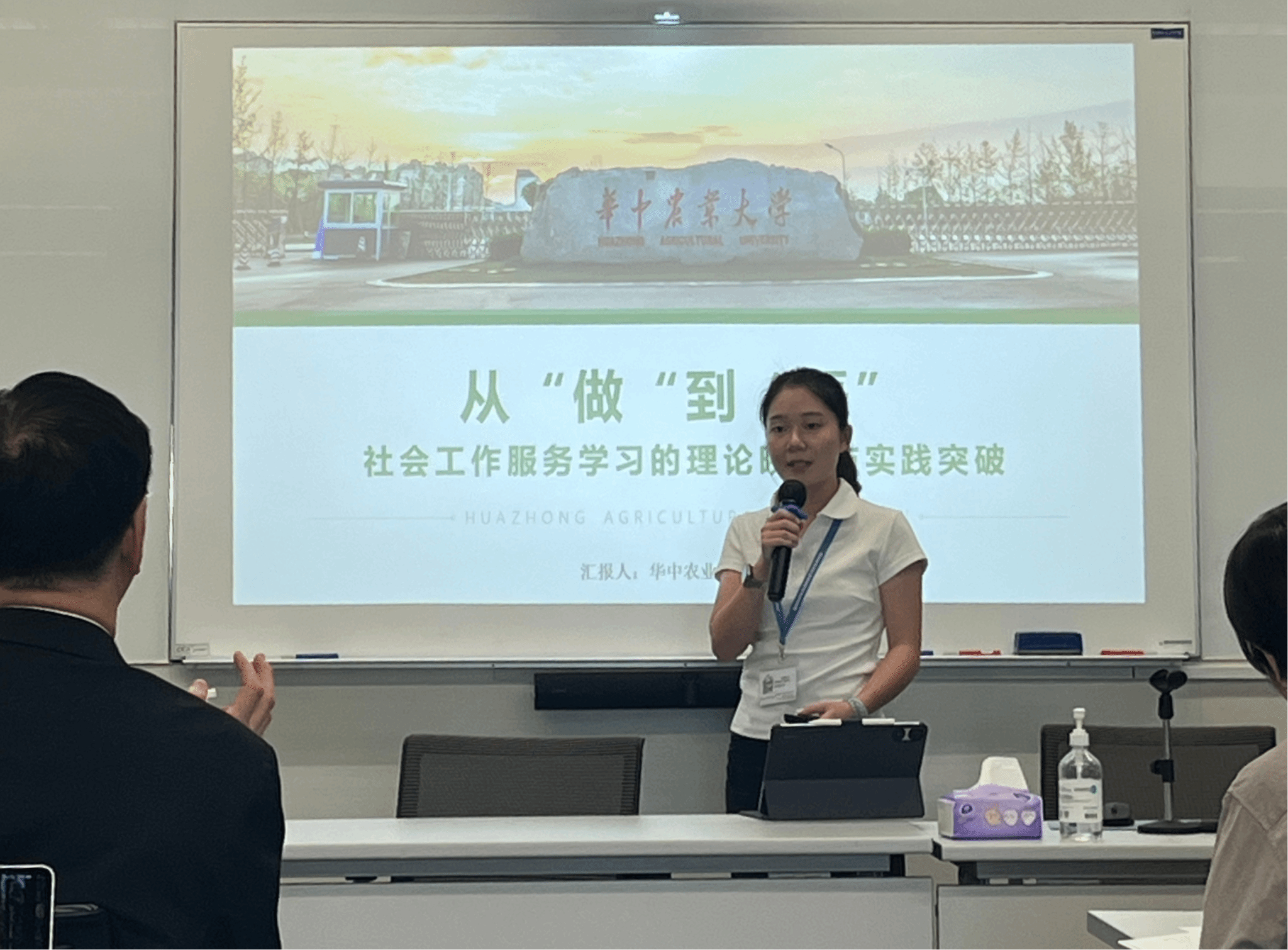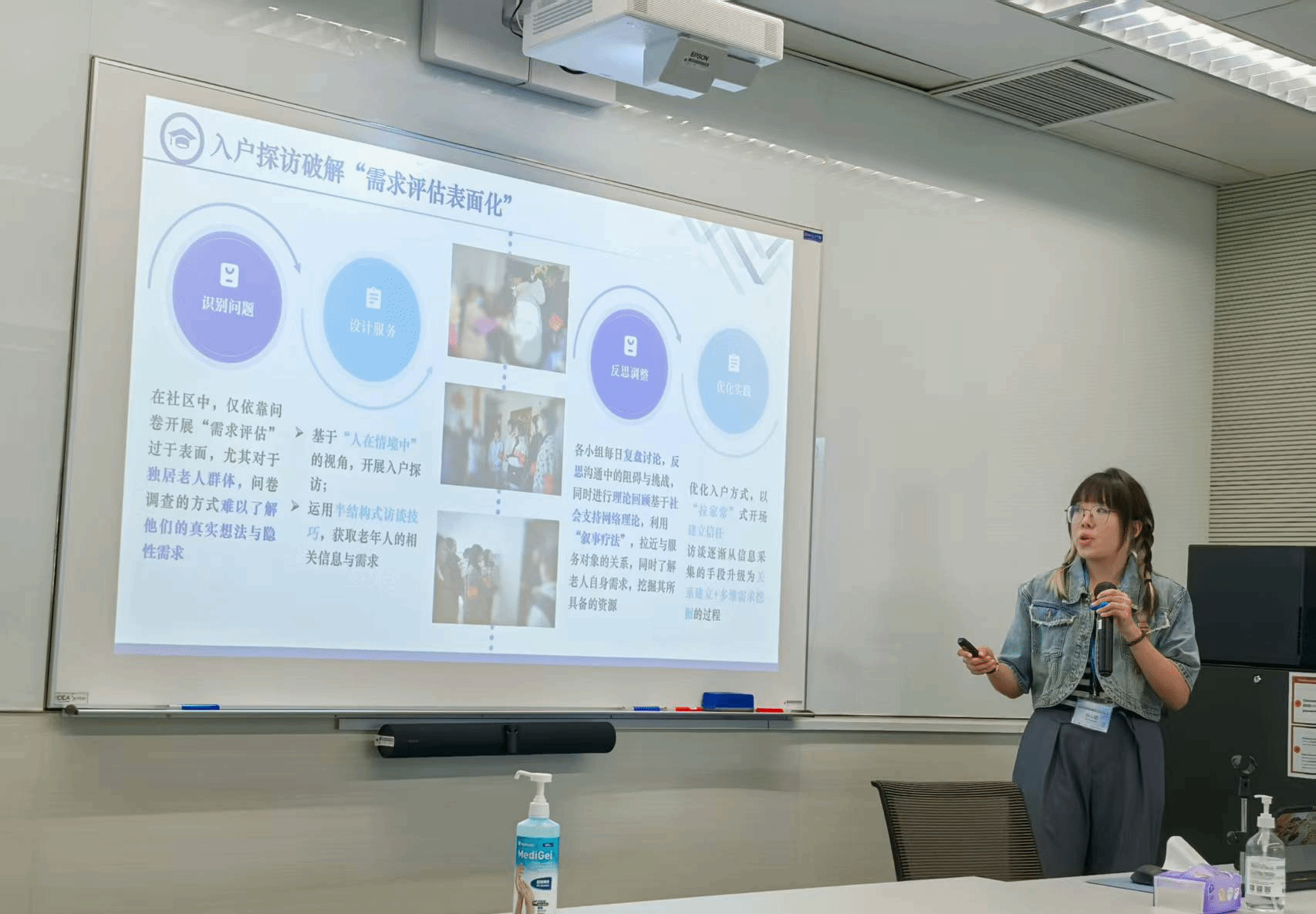 在个人汇报环节,孙心聪同学以bwin官网东社区的服务学习项目为例,系统阐述了该项目的回应的问题、实施过程、社会影响以及自我反思。她的汇报《学以致用,行中致思:服务学习的影响与反思》荣获服务学习个人汇报金奖。王喆同学则基于在粮道街街道社工站的实践,做了《从“做”到“悟”:社会工作服务学习的理论映照与实践突破》回报分享如何将理论融入现实服务,实现专业能力与个人素养的双重提升获得服务学习成果荣誉奖。