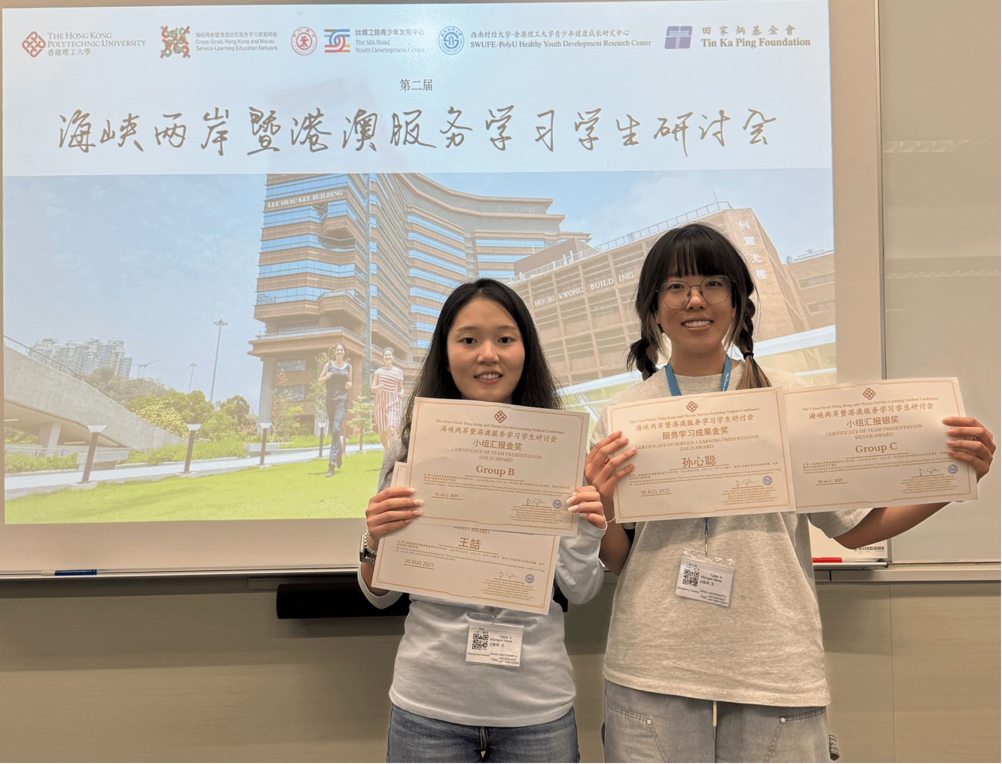 (通讯员 王喆 孙心聪)2025年8月28日至9月1日,第二届海峡两岸暨港澳地区服务学习学生研讨会在香港理工大学圆满举行。本次会议在田家炳基金会的资助下,以“从学生视角反思服务学习的价值(Reflections on the value of Service Learning: Student Perspective)”为主题,致力于通过融合学习、服务与反思的实践,推动与会学生在跨地域、跨文化的交流中增强服务意识、提升社会实践能力,拓展全球视野并深化跨文化理解,进一步促进两岸及港澳地区青年学子的协作与共融。来自香港大学、澳门大学、台湾东华大学、bwin官网等二十余所高校的学生代表参加了会议。我们由钟华老师和蒋俊杰老师带队,社会工作专业孙心聪、王喆两位同学参与会议并取得优异成绩。
