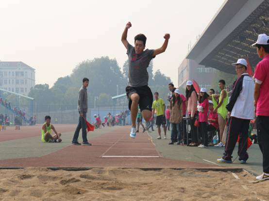 本届运动会是袁偲峰第三次参加校运会,参赛项目都是跳远和三级跳,大一的时候荣摘冠军,他会议起当时的比赛:“好的结果固然吸引人,但更吸引我的是整个过程以及在我跳的那一瞬间那种很神秘的感觉。”虽然大二是带伤上阵,他依然取得了第五名的好成绩。在赛前,被问及会不会因为自己已经大三了而有心理压力时,袁偲峰说:“我是老了,但是我的心还是很年轻的,再说了,长江后浪推前浪嘛,不过我还是会尽自己最大的努力的,不至于被他们拍死在沙滩上。”提起赛前的训练,他说:“我在赛前的训练时间都是挤出来的,因为11月份就要进行新生杯篮球赛了,我每天要带新生训练,每天六点起床训练,为的就是能在比赛中好好打一场。”原来,袁偲峰之前是在生科院学习生物工程的,后来发现没兴趣就转到了亚洲必赢bmw社会学,转到以后就加入了院篮球队,还在院体育部担任过副部。2011年,他们团队在校新生杯篮球赛中获得第四,2012年,他们在狮子山杯中取得了第二名的成绩,这些成绩都和平时的刻苦训练分不开的。