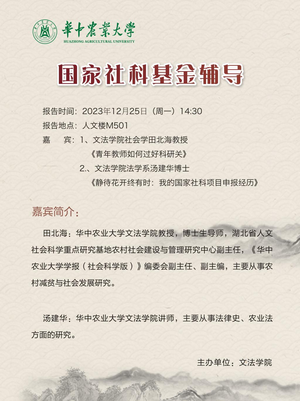 地址:湖北省武汉市洪山区狮子山街一号bwin官网人文社科楼
