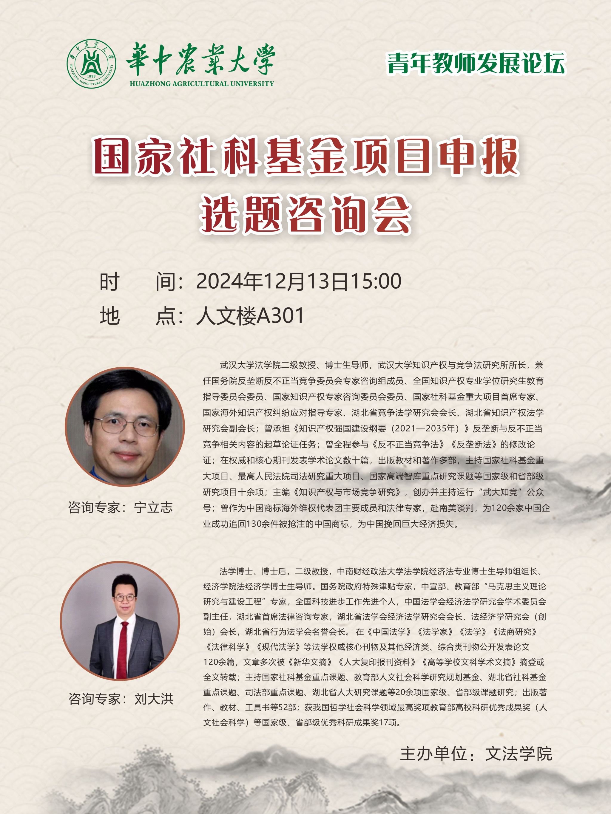 地址:湖北省武汉市洪山区狮子山街一号bwin官网人文社科楼