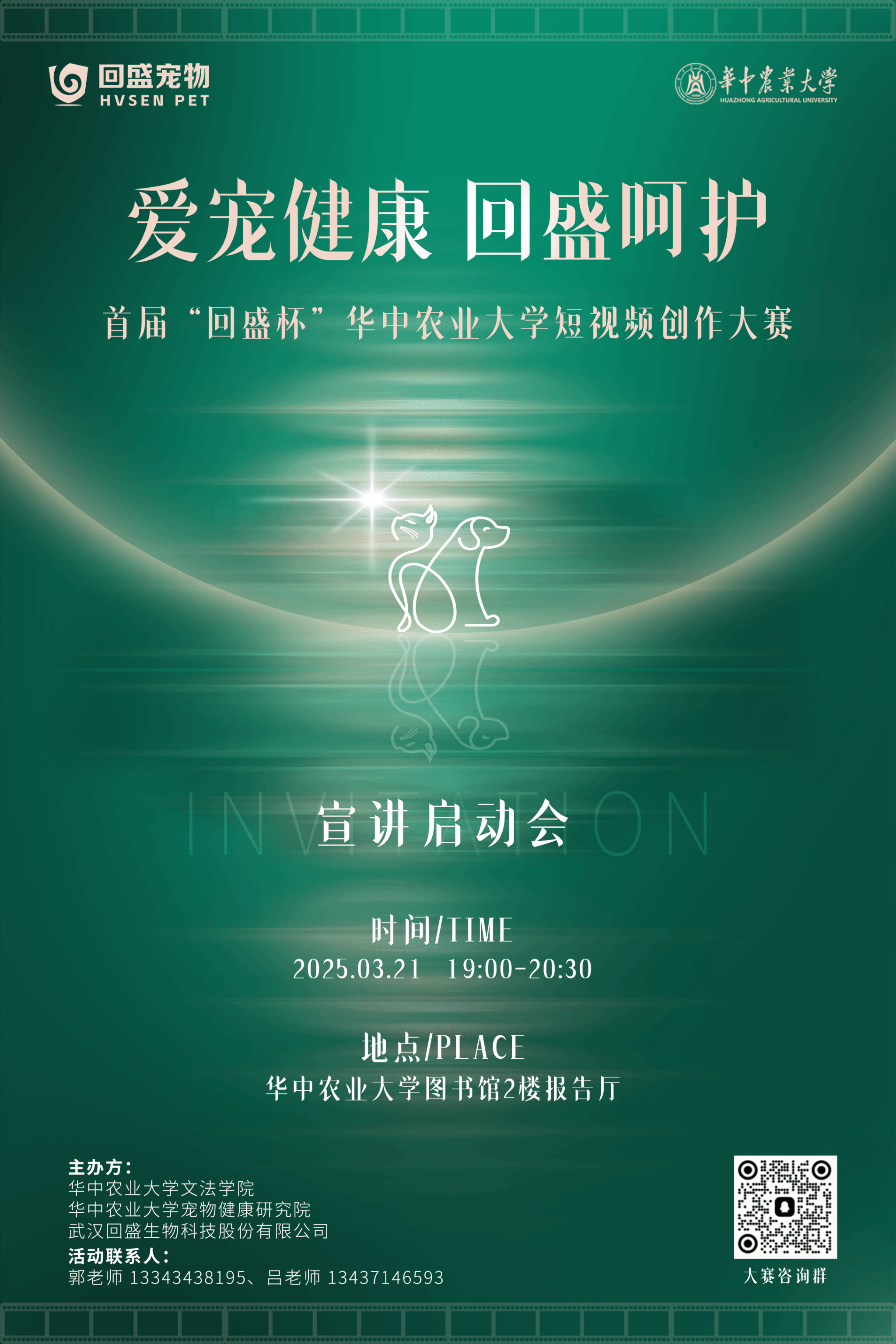 3.作品发布:入围作品将会统一上传至回盛宠物官方抖音号@回盛宠物、官方小红书@回盛宠物、官方视频号@回盛宠物(因平台每天最多只能上传10条内容,组委会将会按照提交作品顺序分发),届时开始累积各作品的线上播放量。